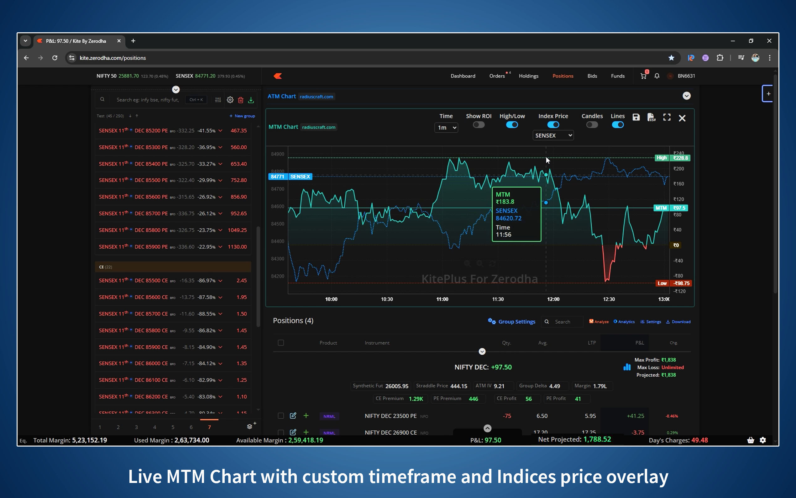 KitePlus is an independent third-party browser extension for Zerodha Kite. It adds some additional features to the already exceptional Zerodha Kite web platform in order to make it even better. All the additional features run locally on user’s browser. Nothing runs on the server.