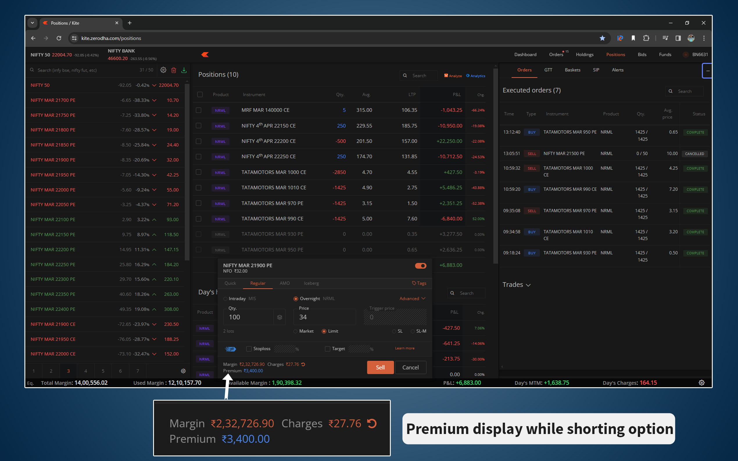 - For sell orders, see the premium receivable displayed alongside margin requirements.